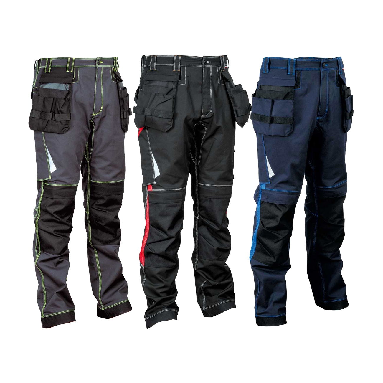 The Ergowear line has been designed for those who work in difficult, humid, cold climatic conditions, in contact with tools and weary work materials: bricklayers, carpenters, shed assemblers and equipment, etc. Cofra Leiria work trousers are made of Strecht fabric, comfortable and practical, which ensures absolute freedom of movement, 64% polyester, 34% cotton and 2% elastane, with anti-abrasion inserts 100% nylon and reinforced horse.