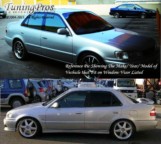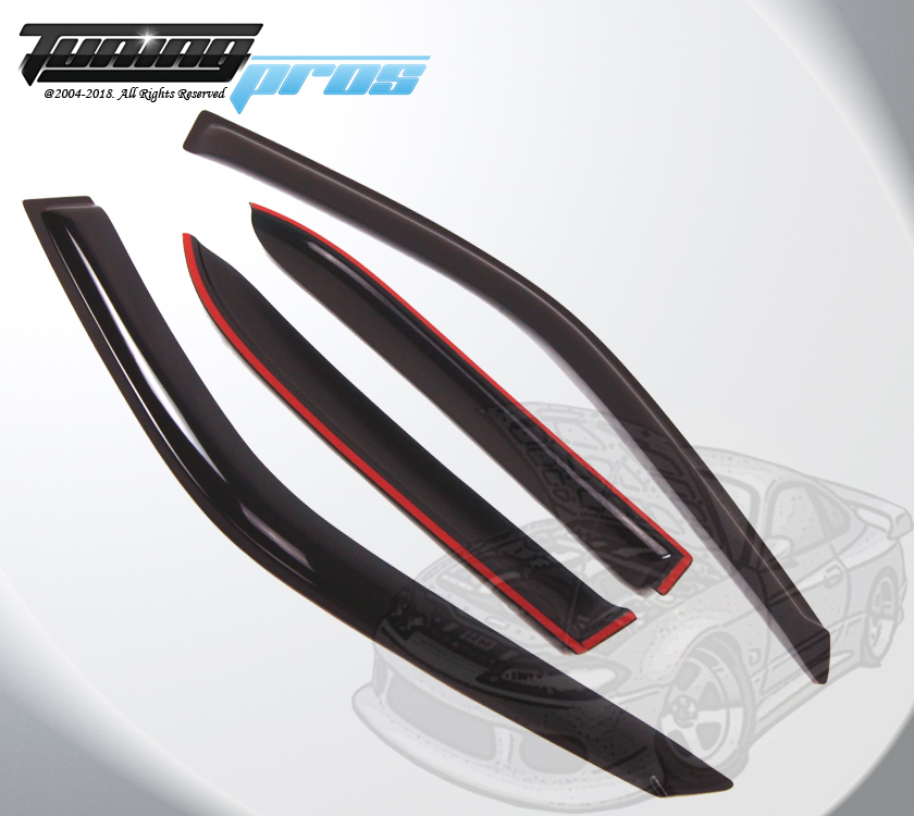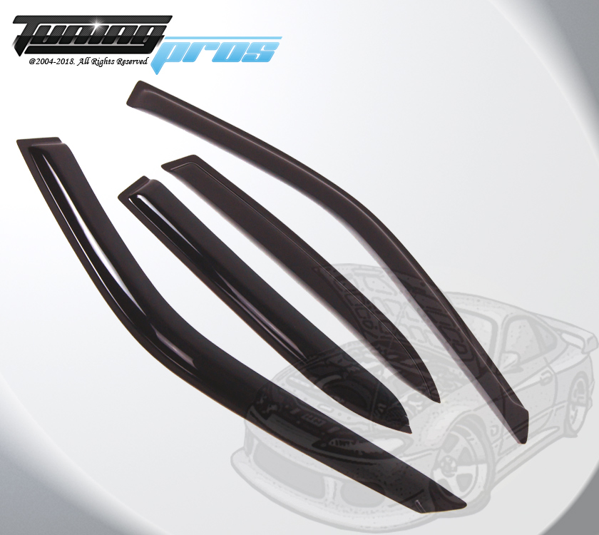 This vent visors are the most popular accessory for all vehicles. Made of reinforced acrylic in smoke tinted color. It can help to reduce heat buildup in parked vehicles by allowing air in when partially open. The vent visor keeps rain out and lets fresh air in vehicles. Easy installation with approved tape. Custom made fit each model (Please check compatibility table on this listing). Each sold for One complete set. Coupe models (2 Door/ Hatchback) contains 2 vent shades visors. The Sedans, wagons and SUVs contain 4 vent shades visors (Please check on listing title and picture about 2pcs or 4pcs visor for this listing). Spec & Features: