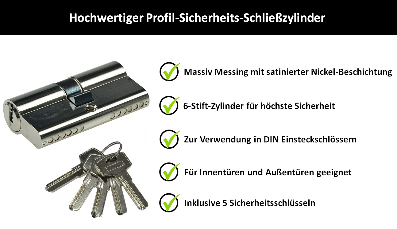 ✔ 6-Stift-Zylinder für höchste Sicherheit