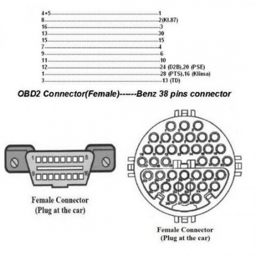 Mit diesem Kabel haben Sie die Möglichkeit Ihren Fahrzeug , die mit einem 38-poligen Diagnosebuchse mit Ihrem vorhandenen 16-poligen OBD2 / EOBD Mercedes Diagnosetools ausgerüstet sind, zu verbinden.