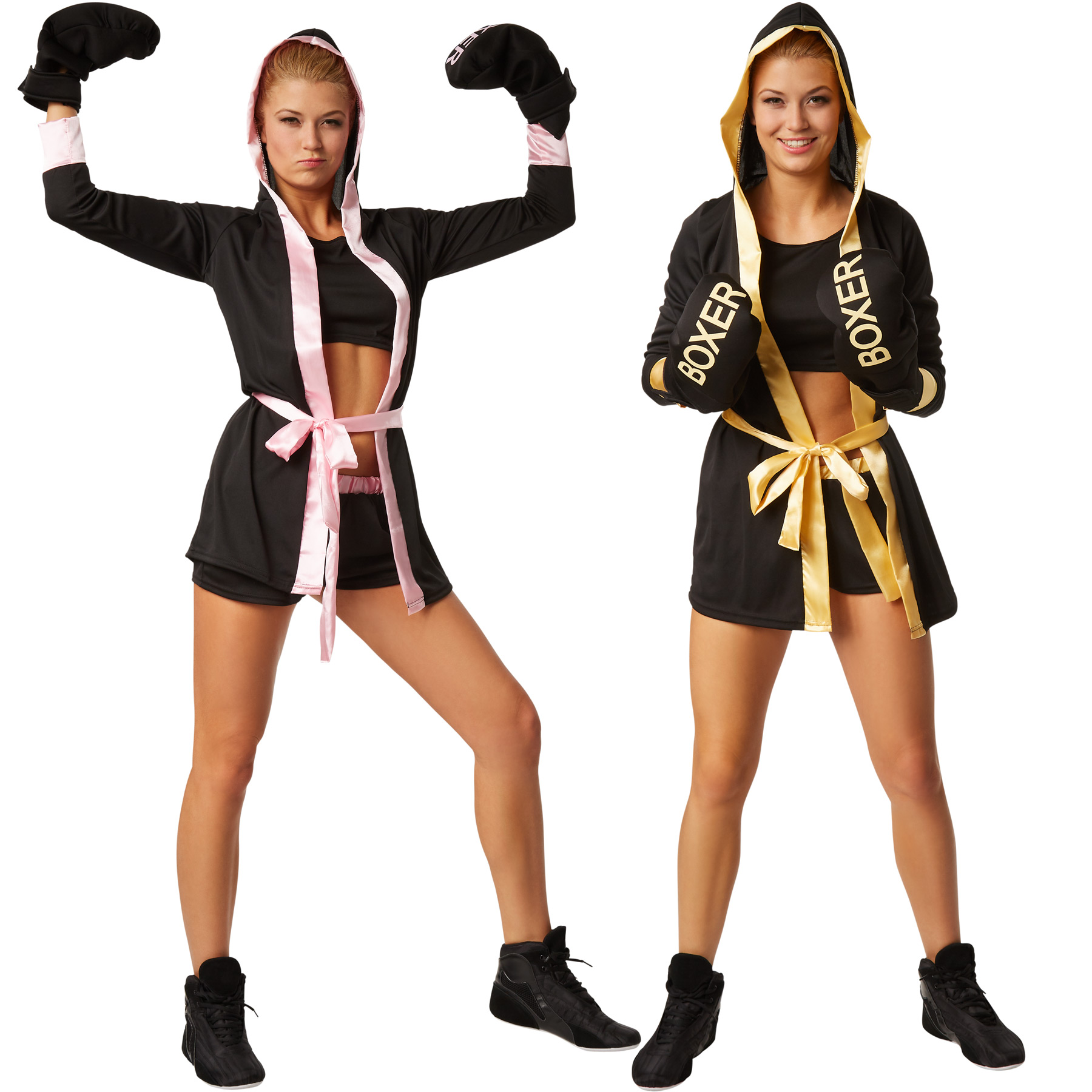 - Boxerkostüm mit Short, Top, Mantel mit Kapuze, Gürtel und Boxhandschuhen