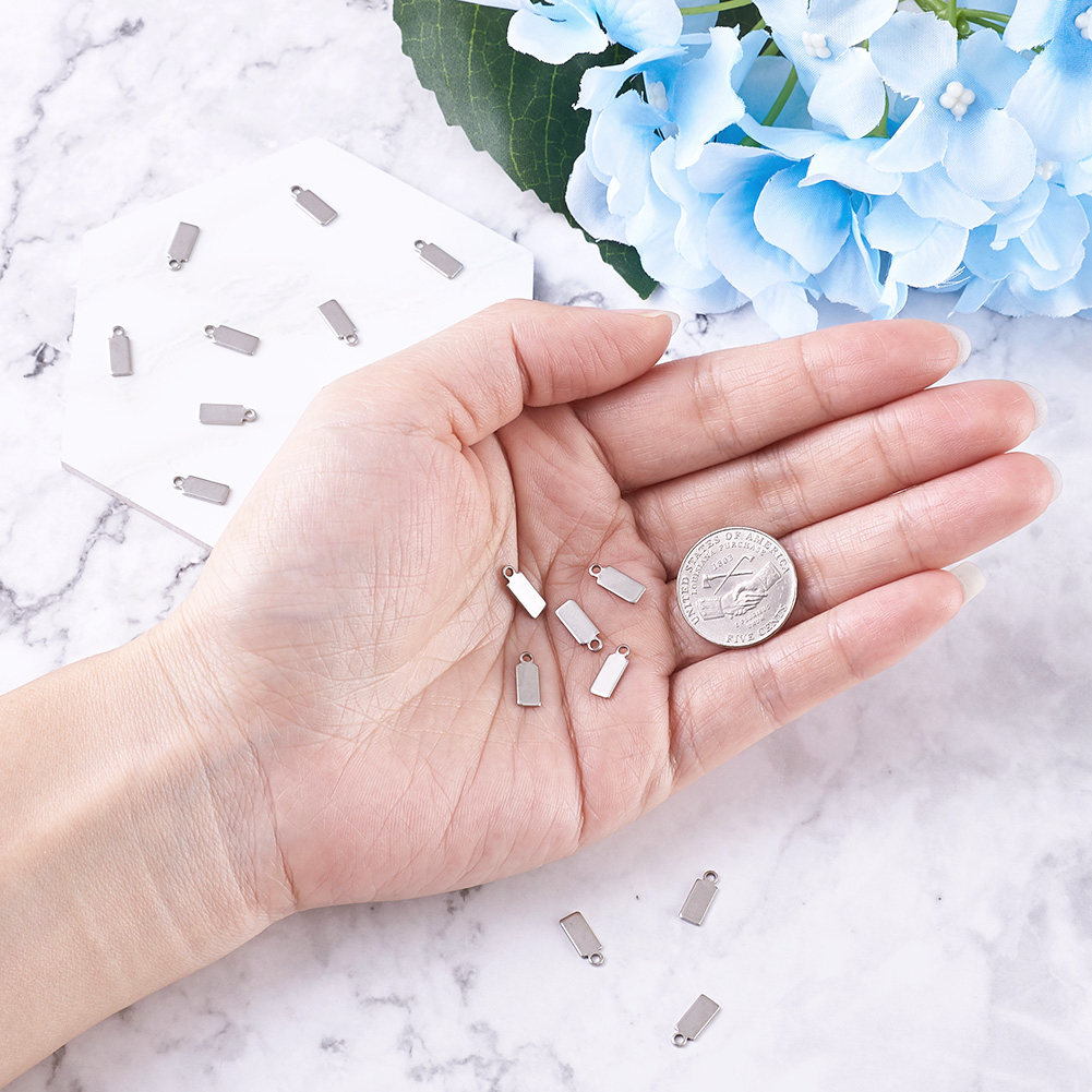 100PCS 304 Stainless Steel Blank Stamping Tag Pendants Charms Rectangle 11x4mm