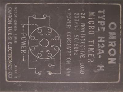 This listing is for 1 used Omron Micro Timer Timing Relay # H2AHAA, 120 Volt AC 60 Hz, 10 second, Type H2A-H, 2A Non-Inductive Load, Power consumption 4VA, 8 Pin Socket Plug-In. Has some minor shelving storage wear. See the 11 expanding pictures provided for more details and information of condition and please make sure that this is what you need before purchasing, as it is non-returnable. Thank you.