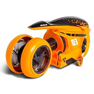 Unique And InnovativeCall ‘em crazy, but the Cyklone 360 does things that professional stunt riders can’t even imagine. Its a unique vehicle with innovative engineering. | Power Spins With LED LightsPower through spins with the RC bike of the future. Along with the wild action, the multi-colored LED light creates an other-worldly appearance. | Ready To Overcome Any ObstacleSet up a slalom course and see how fast you can get around the obstacles. This is the motorcycle of the future that you can have right now. |