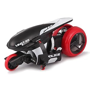 Unique And InnovativeCall ‘em crazy, but the Cyklone 360 does things that professional stunt riders can’t even imagine. Its a unique vehicle with innovative engineering. | Power Spins With LED LightsPower through spins with the RC bike of the future. Along with the wild action, the multi-colored LED light creates an other-worldly appearance. | Product descriptionColor:Black | Product Packaging:Standard Packaging Maisto Tech Street Series Futuristic style radio control motorcycle with amazing spinning action. Buy 2 and play with your friends in a head to head battle. Available in orange and black police styles. Changing-color LED gives a futuristic glow while the bike is on. The operator controls the rear wheel angle to make the Cyklone 360 steer. Click on the video to see the wild spinning stunts that are easy enough for a child to quickly master.Ready To Overcome Any ObstacleSet up a slalom course and see how fast you can get around the obstacles. This is the motorcycle of the future that you can have right now. |