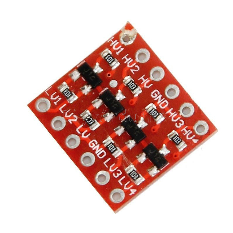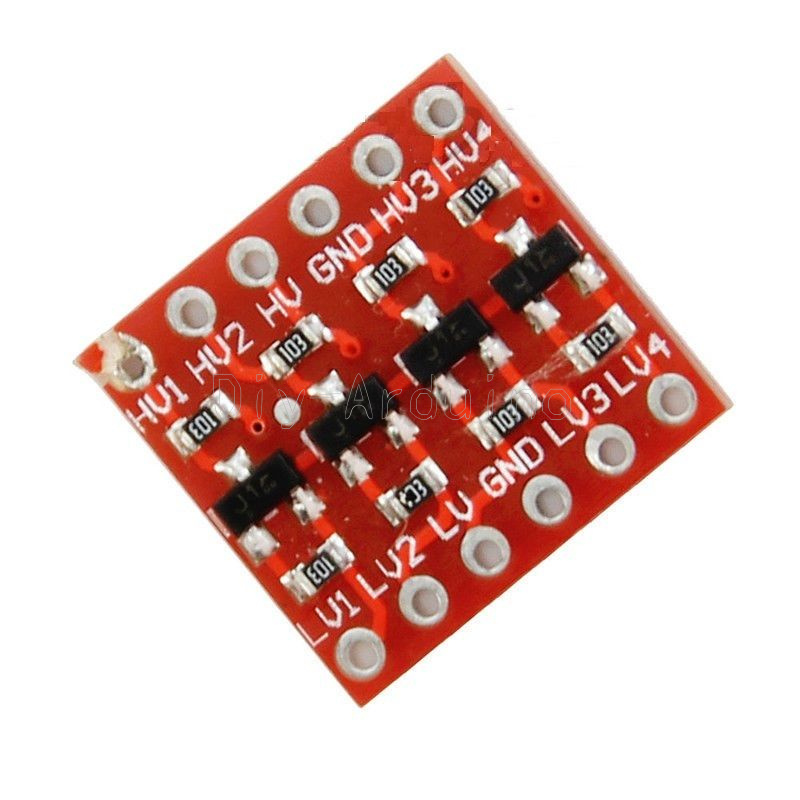 If you've ever tried to connect a 3.3V device to a 5V system, you know what a challenge it can be. bi-directional logic level converter is a small device that safely steps down 5V signals to 3.3V AND steps up 3.3V to 5V at the same time. This level converter also works with 2.8V and 1.8V devices. What really separates this Logic level converter from our previous versions is that you can successfully set your high and low voltages and step up and down between them safely on the same channel. Each level converter has the capability of converting 4 pins on the high side to 4 pins on the low side with two inputs and two outputs provided for each side