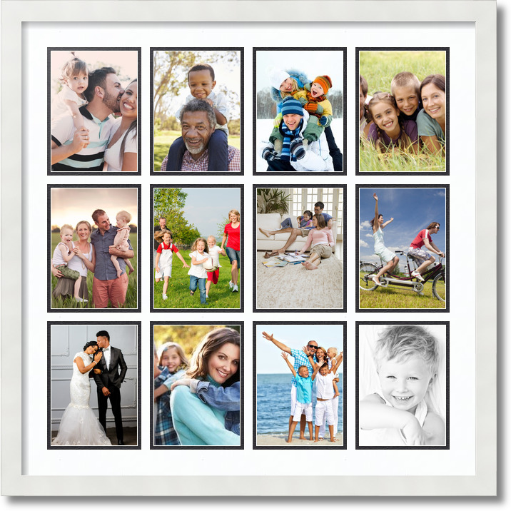 Satin White Collage Double Mat with 12 Opening and 4x6 size