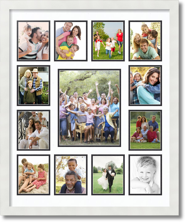 ArtToFrames Collage Mat Picture Photo Frame 13 8x10, 4x5 Openings in Satin White 378