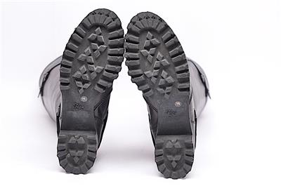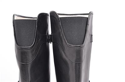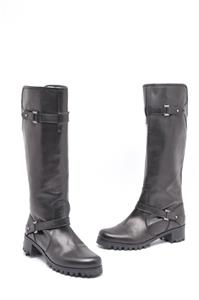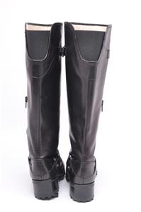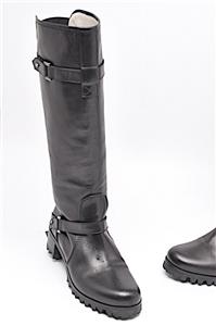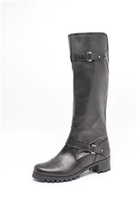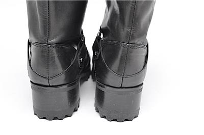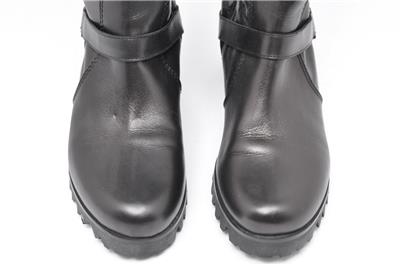 Love these great traction rubber soled black leather knee-high boots from Claudia Ciuti - partial inner mid zipper for closure with strap and buckle detail around the ankle as well as on top - elastic insert on top rear for added comfort, fully lined in leather, beautiful boots.