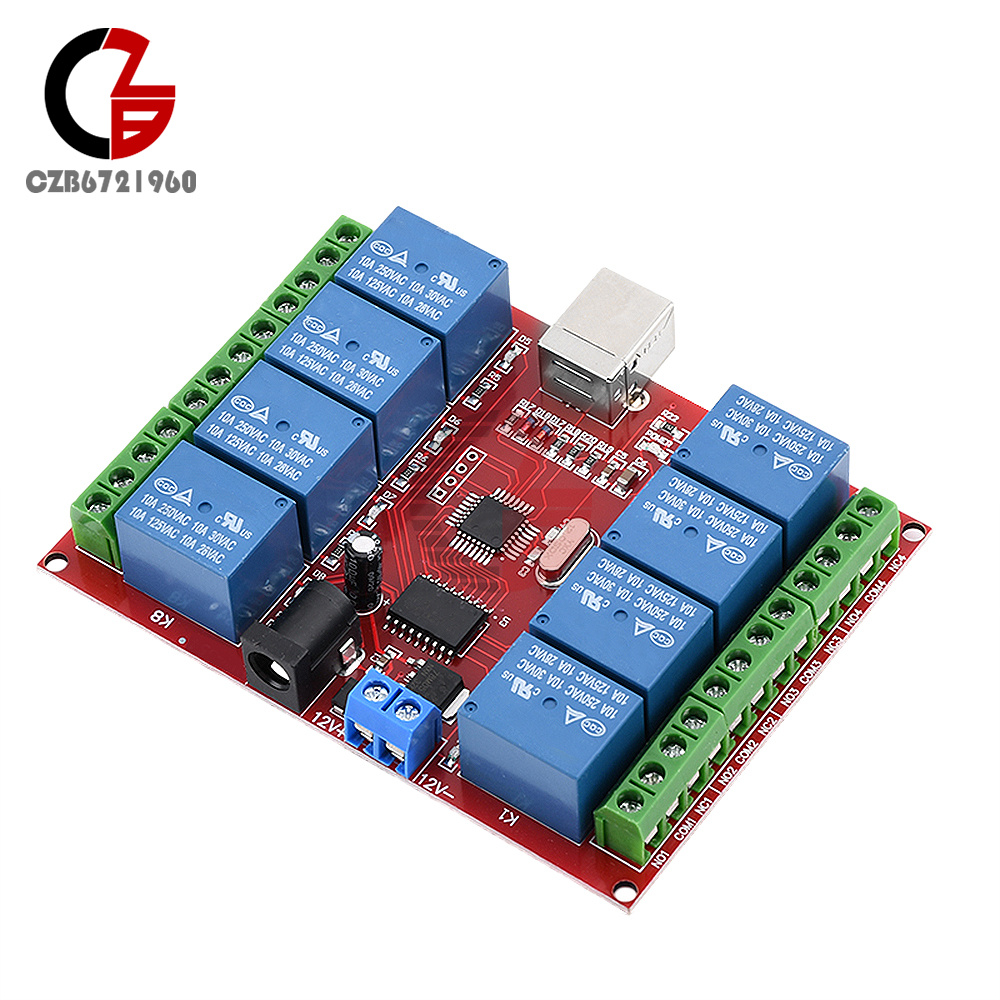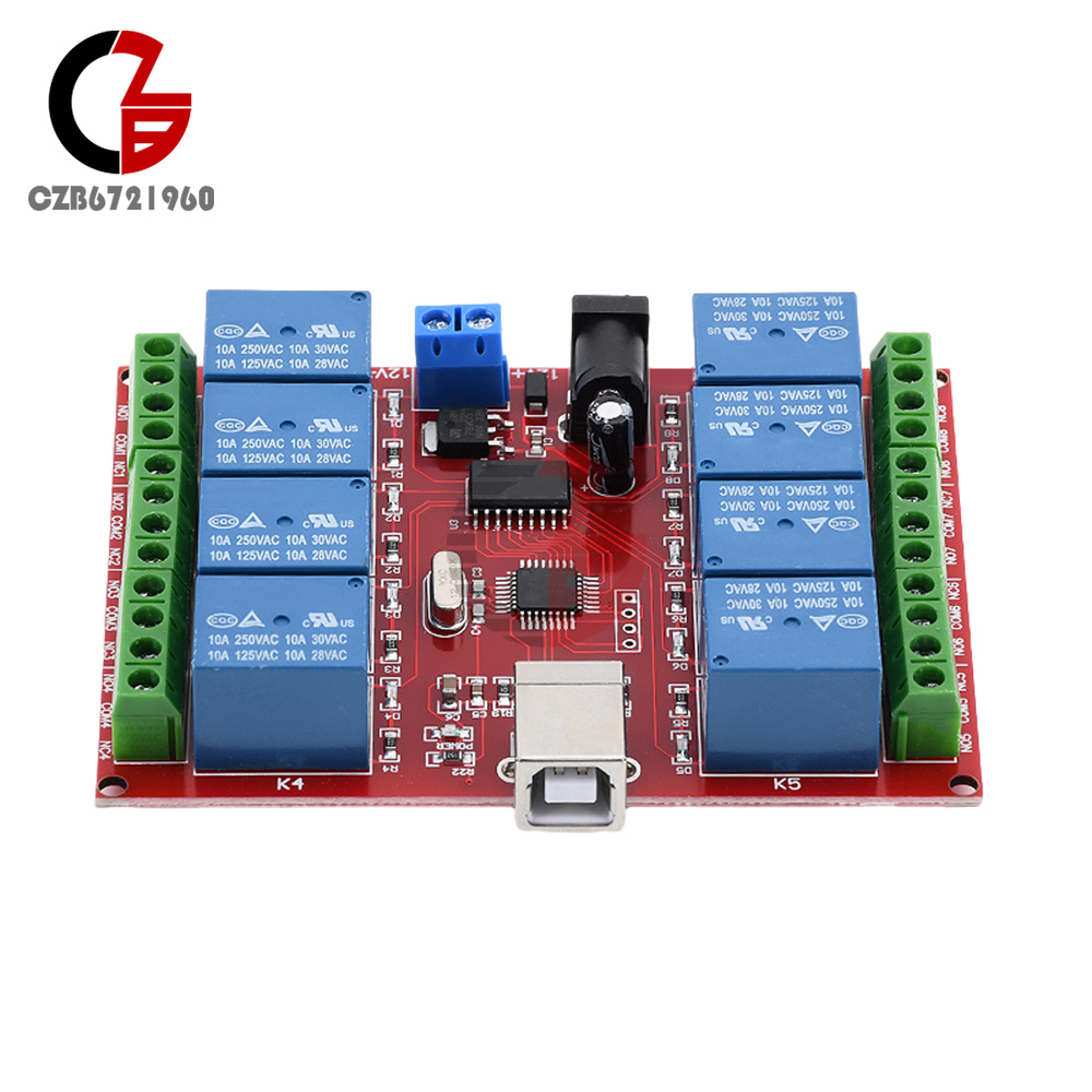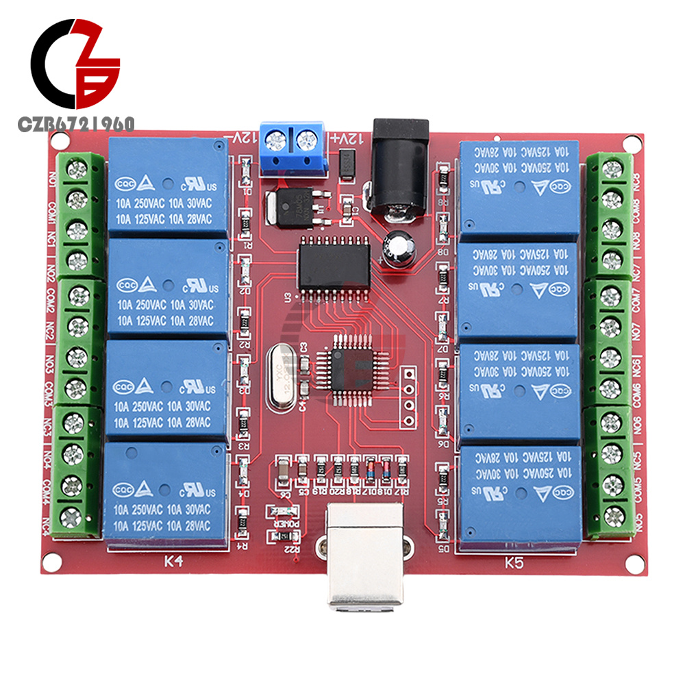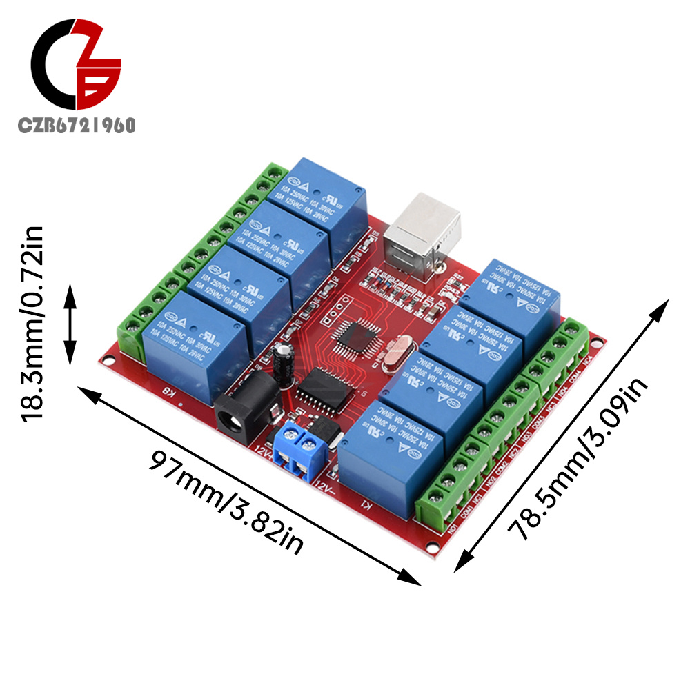 6. board power outlets and terminals, two kinds of access to power is flexible. After connecting the power, even if the computer off or unplug the USB from the computer, the relay can also remains set.