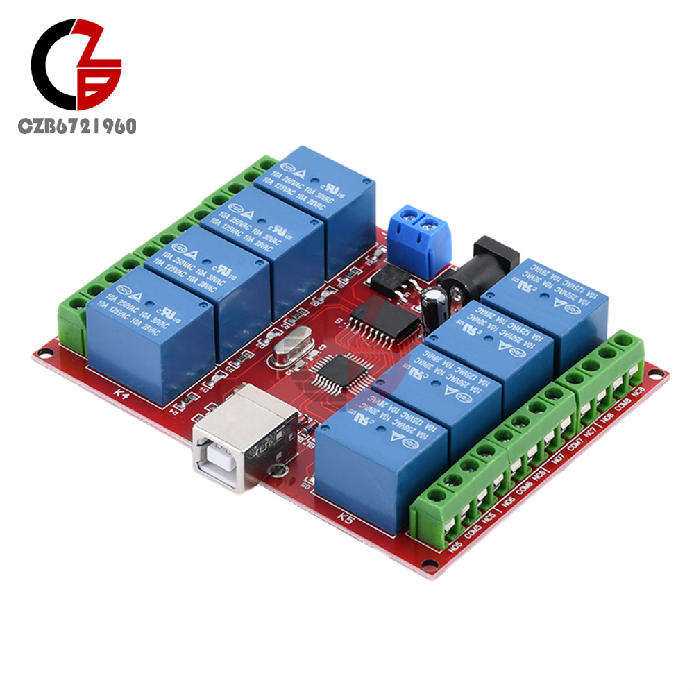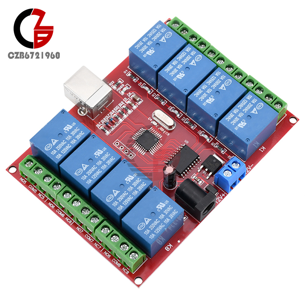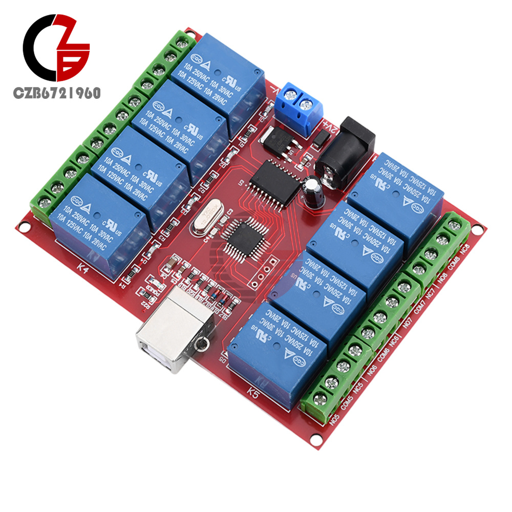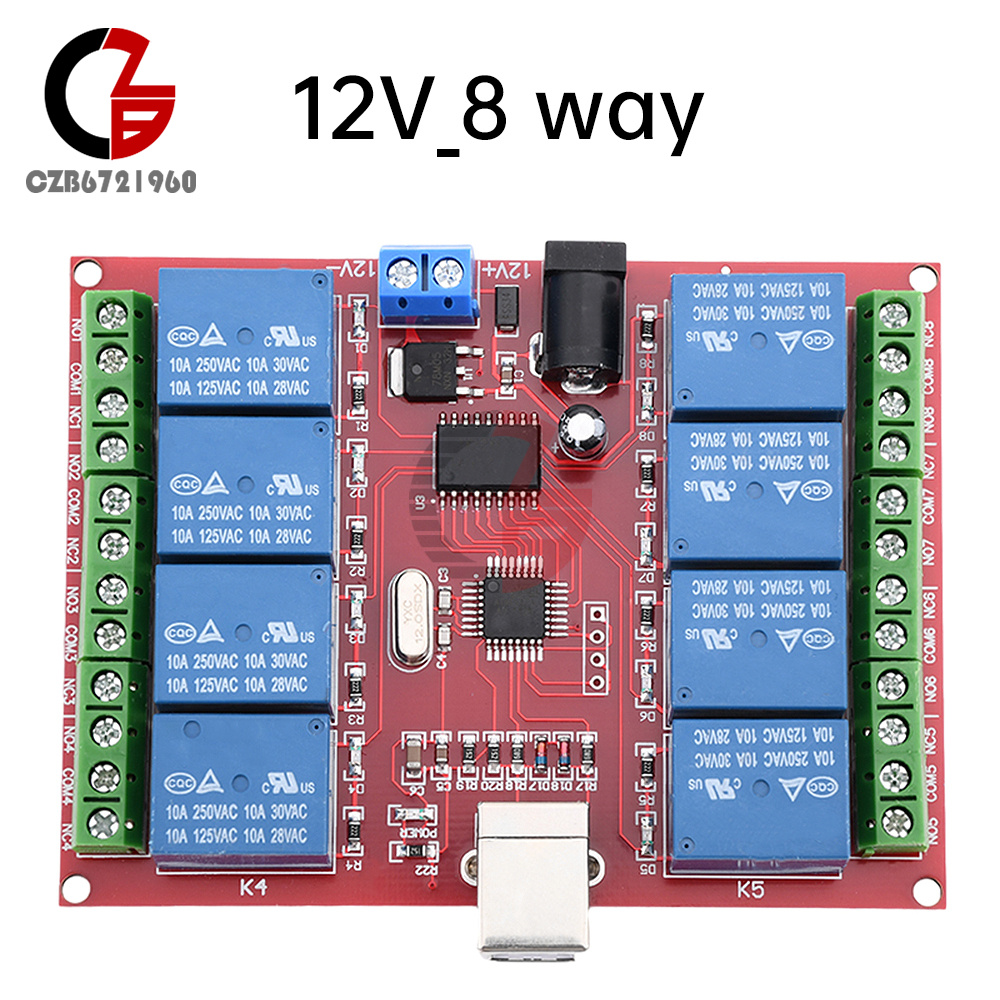 6. board power outlets and terminals, two kinds of access to power is flexible. After connecting the power, even if the computer off or unplug the USB from the computer, the relay can also remains set.