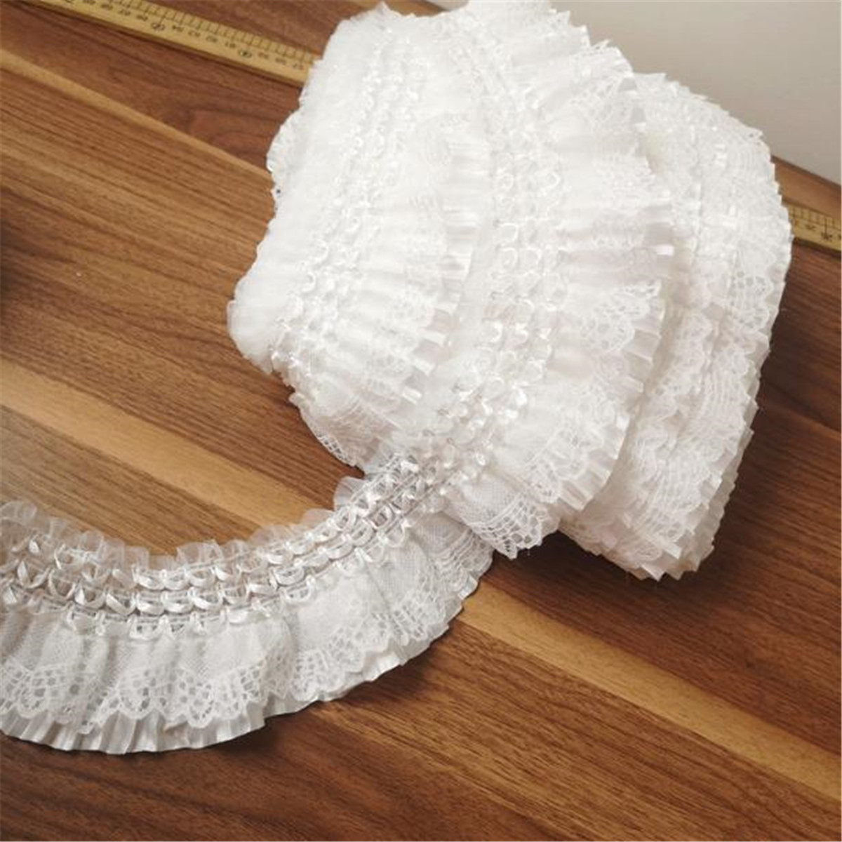 White Elastic Pleated Lace Trim Ribbon Fold Ruffled Accessory 2.75"Width