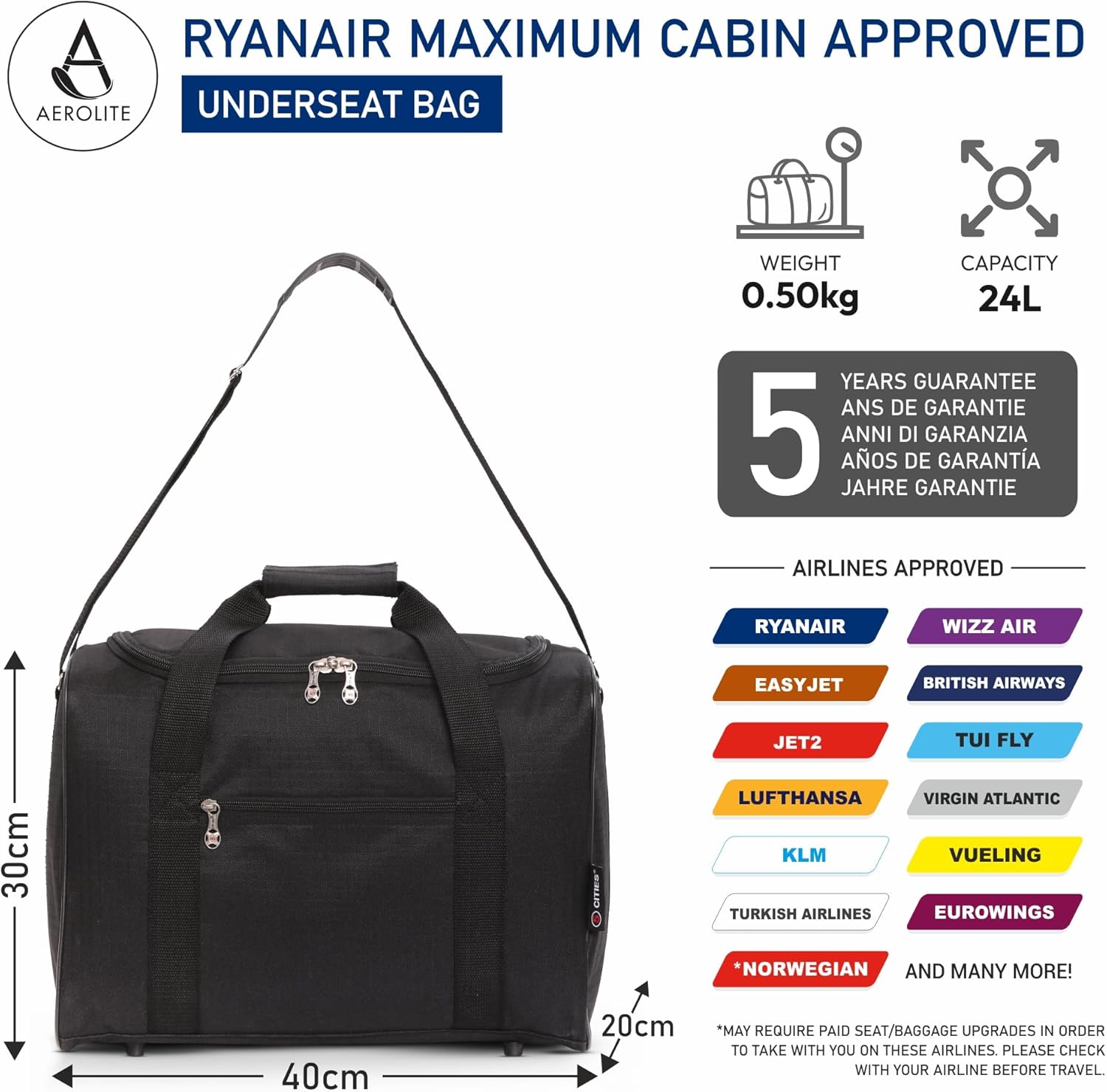 ✨ RYANAIR MAXIMUM CABIN LUGGAGE SIZE: We specifically designed our 5 Cities holdall to measure 40x30x20cm; which is EXACTLY the maximum allowed size you can take in the cabin when flying with Ryanair and Wizz Air. It is also accepted on virtually all major airlines world-wide; including Easyjet, British Airways, Etihad, Emirates, Delta, Lufthansa, Norwegian, Jet2, KLM, Qatar and Virgin Atlantic to name just a few. 💼 UNDER SEAT FLIGHT BAG: This compact holdall is the perfect piece of cabin hand luggage for your travels. It fits conveniently under your seat and allows quick access to anything that you need throughout your flight; such as books, headphones, snacks and electronic devices. Dimensions: 40x20x25cm, Weight: 0.5kg, Capacity: 24.5L. 🔒 SAFE AND SECURE: No need to worry about the safety of your belongings, this holdall features a spacious and lockable main compartment to help keep your belongings safe on your travels. The convenient front zipped pocket is an ideal space for your travel documents and any items you need to quick access to. 🎒 CARRY BY HAND, WEAR ON YOUR SHOULDER, OR MOUNT OVER LARGER LUGGAGE: This holdall is highly adaptable. It features two handles on the top with a velcro clasp to carry by hand. If you prefer to wear your bag on your shoulder, it includes a length-adjustable shoulder strap for convenience. Or if you’re travelling with a larger cabin case or hold luggage, it features a dedicated mounting strap on the rear – allowing you to mount the bag over your extendable trolley handle. 🛡️ 2 YEAR WARRANTY: Our durable holdall bags are designed to last but for peace of mind, 5 cities offer a 2 year guarantee replacement service covering all manufacturing defects. Lightweight Hand Luggage 40x30x20cm - Underseat Carry On Cabin Holdall Bag When placing an order via eBay, you will have many payment options at checkout including PayPal, PayPal Credit, Credit Card, Debit Card, Apple Pay & Google Pay. We aim to dispatch your order within 1 working day. Standard shipping typically takes 2-4 working days depending on your location. If you are not satisfied with your purchase, you can return it within 30 days for a full refund. Returned items must be in their original condition. Your feedback means a lot! Please leave us a positive review if you’re happy with your purchase. Contact us if any issue arises before leaving feedback. eBay Shop |