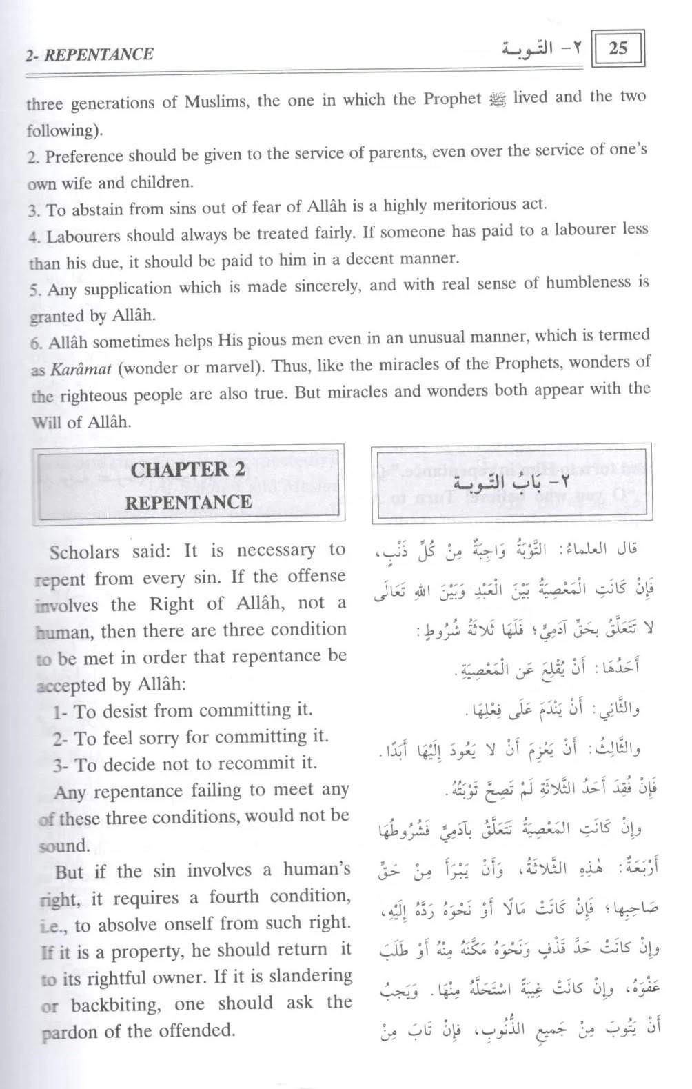 An extremely popular and useful compilation of authentic hadith. Covering every aspect of Islamic belief and moral conduct, it selects approximately 2000 hadith from the six major collections: Bukhari, Muslim, Abu Dawood, Tirmidhi, An-Nisai and Ibn Majah. It serves as an excellent hadith primer and daily reader. Wide range of topics: sincerity of purpose, spending in the way of Allah, rules of fasting, seeking knowledge, attending funerals and safeguarding the Quran. Arabic text as well as English translation are presented here in this handsome hardcover two volume set.