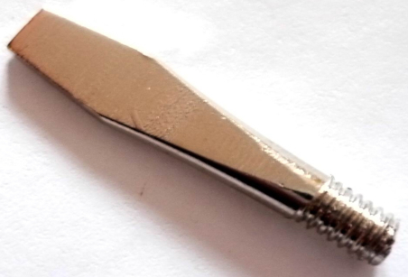 - Hinweis: Bei den 4 nachfolgenden Lötspitzen mit Ø Gewinde von ca. 3,5 mm kann es vorkommen, dass die Lötspitze zu viel Spiel im Lötkolben hat und daher nicht fest genug sitzt. Dies hängt natürlich vom jeweiligen Hersteller bzw. Lötkolben ab. Eventuell könnte etwas Kupferdraht um die Gewindegänge gewickelt werden. Andere Alternative: Lötspitze auf den Stumpf einer alten Lötspitze auflöten!