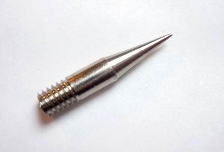 - 1. Ø Gewinde: ca. 3,5 mm, Spitze Bleistiftform mit Kupfergewinde ca. Ø 0,6 mm x 32 mm Länge - diese Lötspitze hat einen geringeren Gewindedurchmesser!! Gewindelänge: ca. 6 mm, Länge Spitze: ca. 9 mm, Material: reines Elektrolytkupfer mit einer Reinheit von 99 %, für optimale Wärmeleitung, überzogen mit einer Zinn-Silber-Schicht