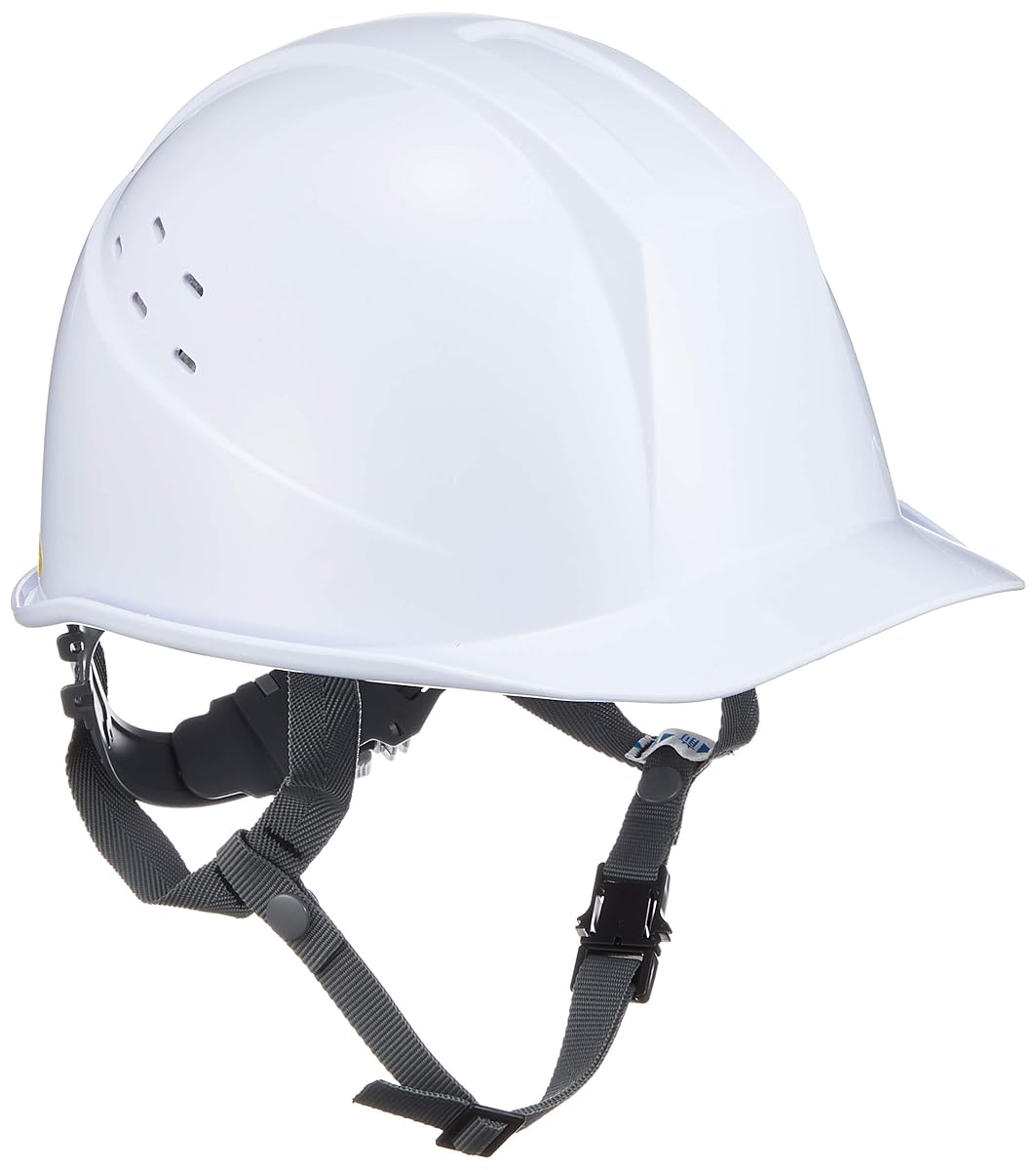 [Features] ● ABS: conventional heat resistant temperature is 70 ~ 100 ° C., although marking properties and electrical insulation properties is good, the heat resistance is somewhat inferior. Useful life is less than 3 years. ● KP (shock absorbing liner): This is the shock-absorbing pads to be mounted helmet to internal made of styrofoam or the like. It is possible to reduce the impact to the head by attaching the KP. ● take off prevention mechanism: Agobando the adoption of ear straps to secure the, to prevent the impact displacement or falling off of the helmet by from the front and back. ● RA band (ratchet adjuster band): flexible materials and, curved shape to fit so as to wrap the back of the head. To prevent the wobble of the helmet. ● Rain guard (raindrop prevention groove): the cap body around to effective in outdoor work in the rain, it will find a rain guard. ● Ventilation Design: By providing a vent, is the ability to reduce the stuffiness of the head.