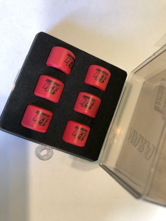 Set of 6 variator weight weights . These high-quality HD [Heavy Duty] weights not only perform very well as a stock weight replacement, but also show their true potential in high-end engines. During production, the inner ring is carefully knurled and only after this is it bonded with the plastic. This prevents the weight material from separating from the inner ring under temperature fluctuations, which usually happens with cheaper weights. The high PTFE content in the outer material provides good self-lubrication and durability and the characteristics of the Teflon provide smooth Variator shifting. Very good value for money and one of the most durable weight components in our range.