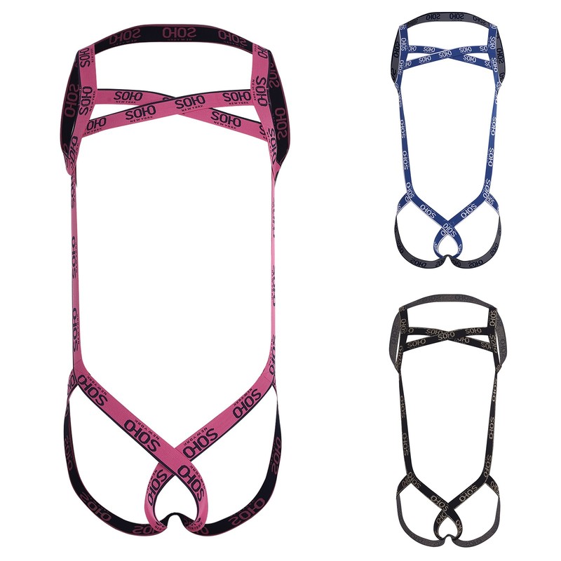 Front with mesh or net bulge pouch, no side straps, just slip into place.