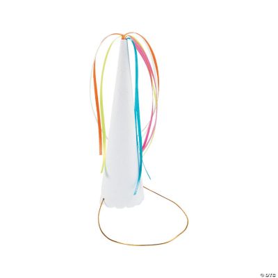 Magical parties begin with these Unicorn Horn Party Hats! These unicorn horns are sprinkled with iridescent glitter and have multi-colored ribbons sprouting from the tip. They're perfect for little girls who dreams of unicorns and rainbows. Paper. 8" x 2" diam. hats with 7 1/2" ribbons and gold elastic band.