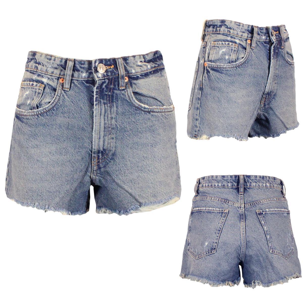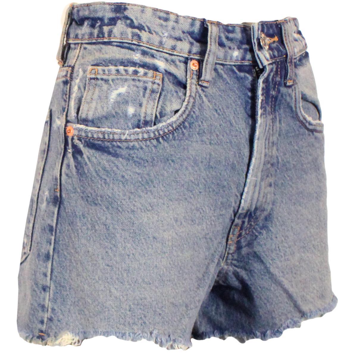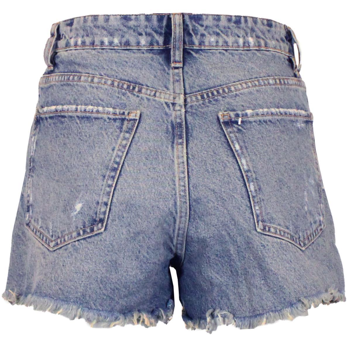 Womens Denim Shorts Hot Pants With Cut Raw Hem - Mid Wash