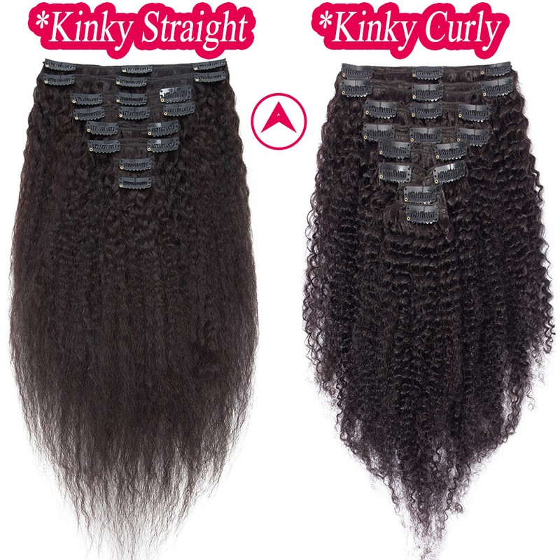 1)Kinky Curly Full Head Thick Double Weft Human Hair Extensions.