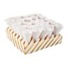 Add some fun detail to your snack bar with this tray and cone set. Pre-fill the cones with some treats and set them out for guests to grab. Perfect for bridal showers and wedding receptions. Includes two trays with 24 holes each and 50 paper cones. Paper. (52 pcs. per set) Tray, 11" x 11" x 2 1/2"; cones, 3 1/2". Simple assembly required. © OTC