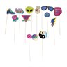 Party on, chokers, overalls and fanny packs are back in style! With cutouts of sneakers, peace signs and slang, these photo stick props are a great addition to 90s-themed party supplies. Simply set these next to your DIY photo booth or place them all together in a jar as a centerpiece guests can interact with. Rollin’ (and picture posin’) with your homies has never been so fun! Paper. (1 dozen per unit) 2 1/2" - 6 1/4" x 2 3/4" - 4 3/4" shapes on 10 1/2" wooden sticks. © OTC