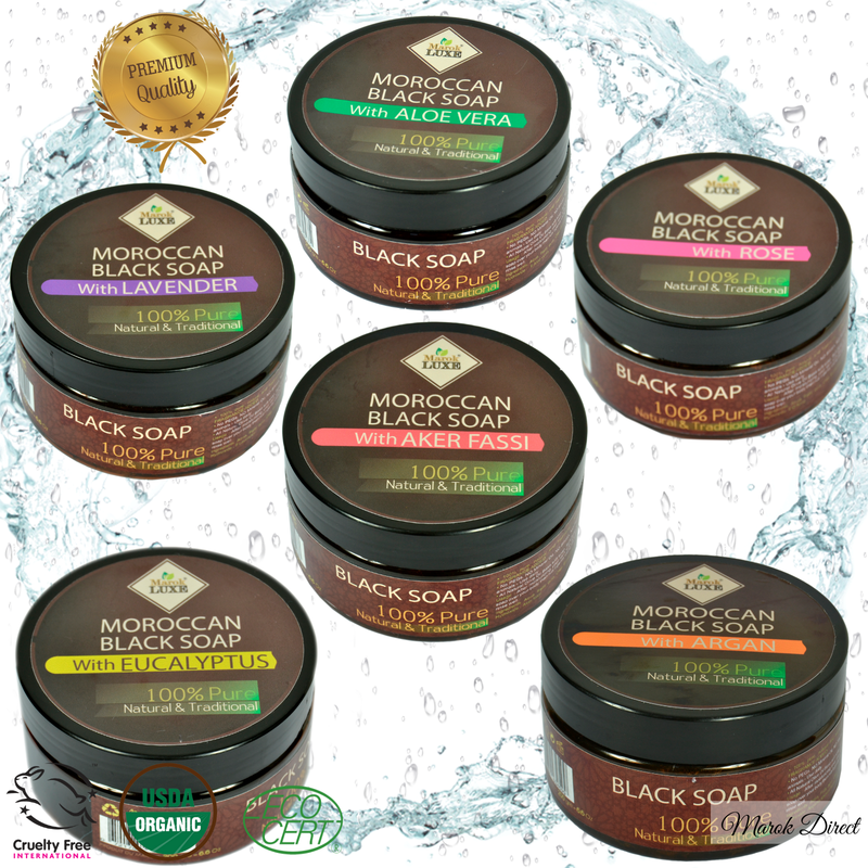 Marok Luxe Moroccan Black Soap is our very own traditional Moroccan Black Soap, produced and packed in certified production facilities in Morocco.