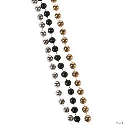 • FESTIVE ACCESSORIES: These breakaway necklaces feature gold, black, and silver plastic beads, making them a fun and colorful accessory for parties. • IDEAL FOR CELEBRATIONS: Perfect for New Year’s Eve, Mardi Gras, and other festive occasions where guests can wear stylish, eye-catching beads. • BULK PACK: Includes 48 necklaces, making them great for large gatherings, event giveaways, or party favors. • EASY TO WEAR: Each necklace features a breakaway clasp for safety and convenience during celebrations.br br Product Description:br You can’t throw a Mardi Gras party without Mardi Gras beads! The perfect addition to your Fat Tuesday party supplies, these plastic beads come in assorted colors and are ready to be passed out to all your guests. They're also perfect for New Year's Eve parties, wedding receptions, bachelor and bachelorette parties, and graduation parties! Let your guests celebrate in style when you add these to your party favors or scatter them around the celebration table.br Size: 30" breakaway cords with 6mm beadsbr Quantity: 48br Material: Plastic