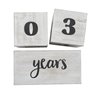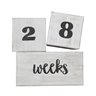 Take a snapshot of your little one posing with these photo prop blocks to document them at milestone weeks months and years! With a whitewashed wood finish and trendy script font these rustic blocks will help you create social media-ready photos of your baby. The blocks double as cute decor for your baby's nursery in between photo shoots and can also be displayed at first birthday parties! Wood. (3 pcs. per unit) 3 1/2" - 7" x 3 1/2"