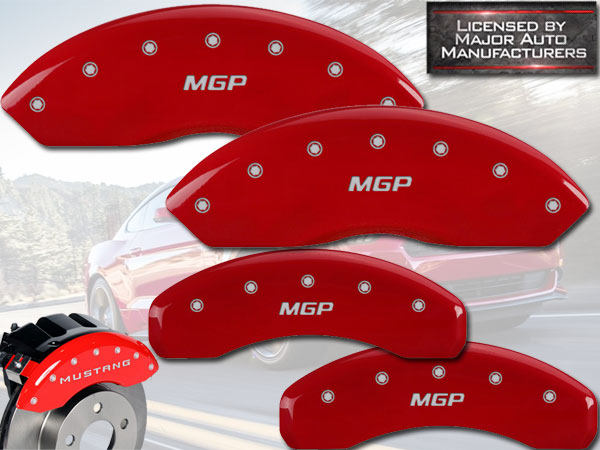 2015-2020 Ford Mustang V6 Front + Rear Red "MGP" Brake Disc Caliper Covers 4pc