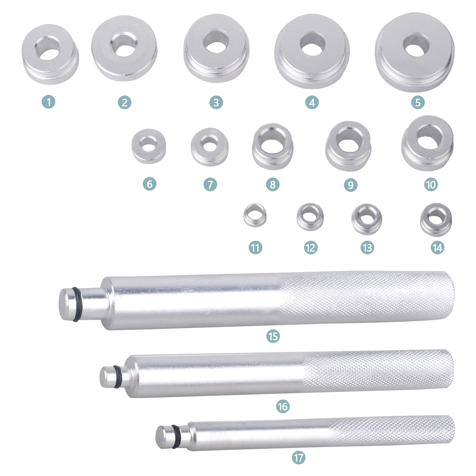 Wheel Bearing Race Seal Bush Driver Set Garage Tool Kit 17pc Aluminum mm