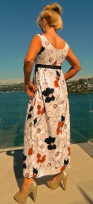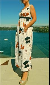 - Fit: Form-fitting at top of bust to Flowing Long Skirt