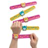 These slap bracelets are the cats' meow! Each fun slap bracelet features images of cute cat prints along with a cat charm of a smiling cat face. Animal-loving kids will love these slap bracelets! Hand these bracelets out as party favors at a cat-themed birthday party or use them as classroom rewards or prizes. They'll go fast! Metal. 9 1/2" with 1 1/2" charm.
