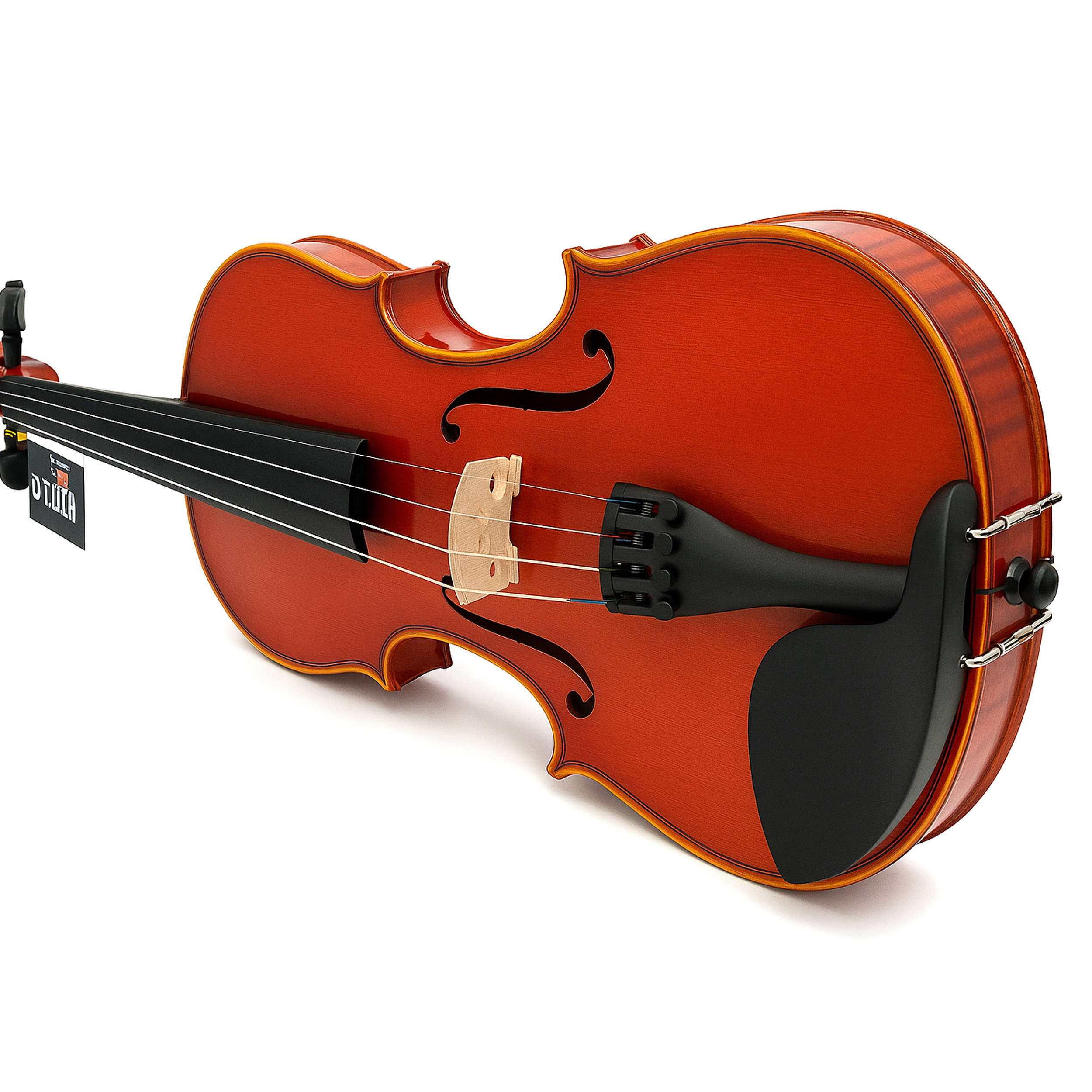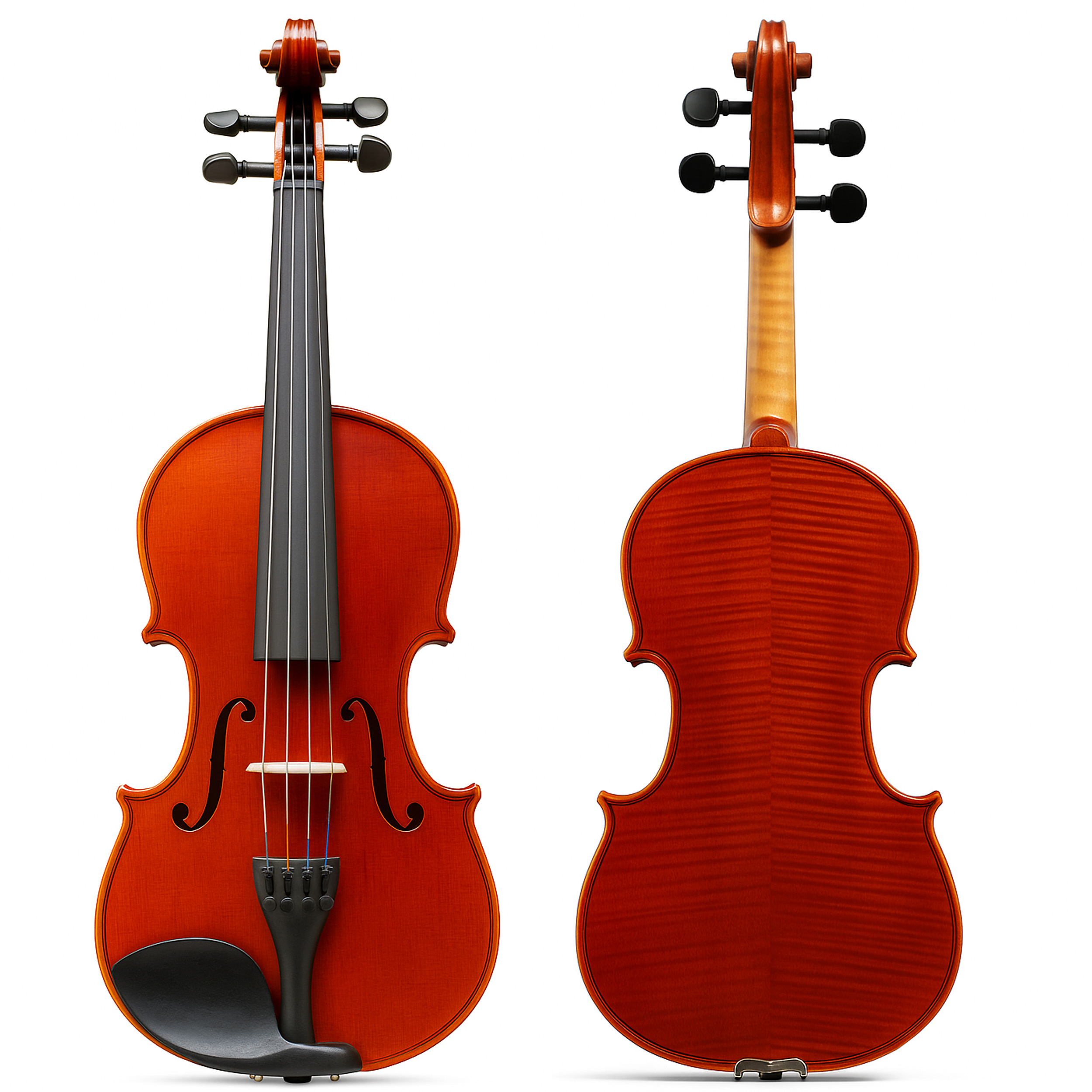 The Strauss Pro 400 Features Ebony pegs, Ebony Fingerboard, and Ebony Chinrest. Metal tailpiece with fine tuners, with Quality Strings, Brazil wood Horsehair Bow, Rosin and Violin Case. This Violin includes: Violin Case, Extra set of D'Luca Violin Strings, D'Luca Chromatic Violin Clip on Tuner an added value to your Strauss Package. 1 Year Limited Factory Warranty.