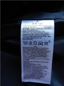 Fabric : Shell - 100% Polyester~ Lining - 100% Nylon ~ Filler - 100% Polyester