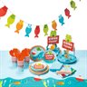 Land a great catch — a perfect birthday party for your little fisherman! This adorable party pack includes enough tableware and decorations for a party of 24. Add this party kit to your party supplies for a first birthday party or toddler party. No need to cast about for more party supplies and party favors; just browse around this website. (190 pcs. per unit) Simple assembly required for centerpieces. © OTC Includes: • 24 Paper Dinner Plates (9") • 24 Paper Dessert Plates (7") • 32 Paper Luncheon Napkins (6 1/2") • 32 Paper Beverage Napkins (5") • 24 Paper Cups (3 3/4" 9 oz.) • 3 Plastic Tablecloths (56" x 108") • 2 Foam Centerpieces (10" x 15") • 24 Orange Plastic Forks (6 1/2") • 24 Orange Plastic Spoons (6") • 1 Paper Pennant Banner (7 ft. x 7")
