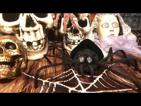 Screaming Spider Halloween Decoration with PIR sensor, Light up red eyes, bendable legs scary