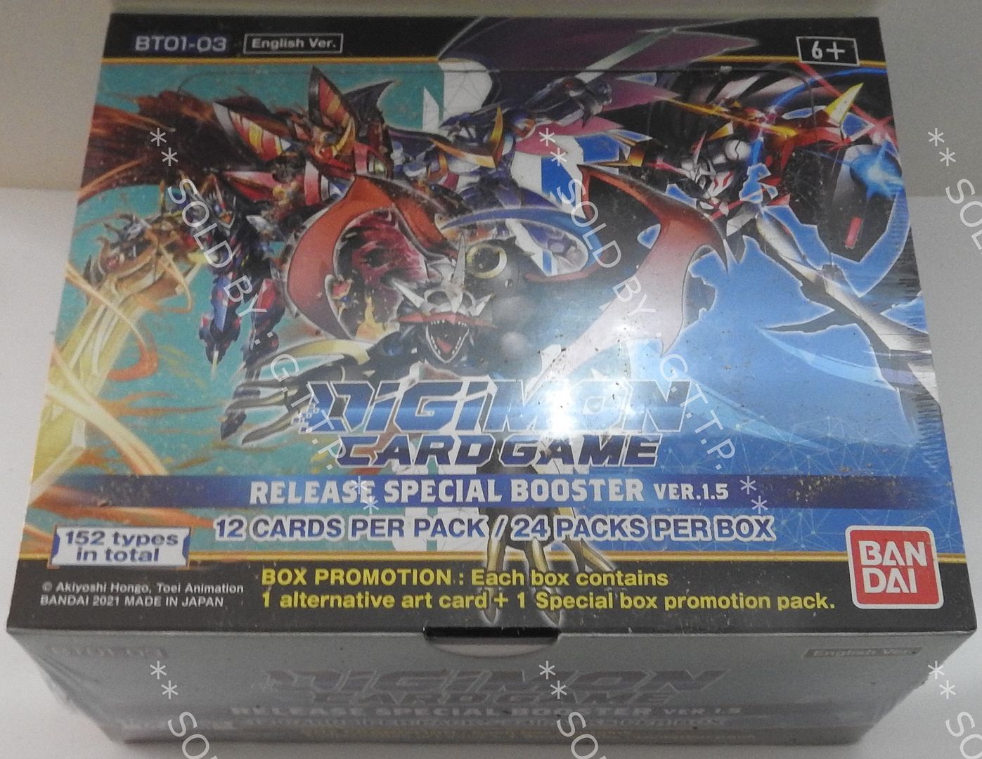 ![]() | **AVAILABLE NOW** ONLY 3 AVAILABLE** GRAB A BARGAIN WHILE YOU CAN! LIMITED AVAILABILITY DIGIMON CARD GAME - RELEASE SPECIAL BOOSTER BOX VER 1.5 BT01-03 (24 PACKS) (AS SHOWN IN PICTURE) Manufacturers Description: