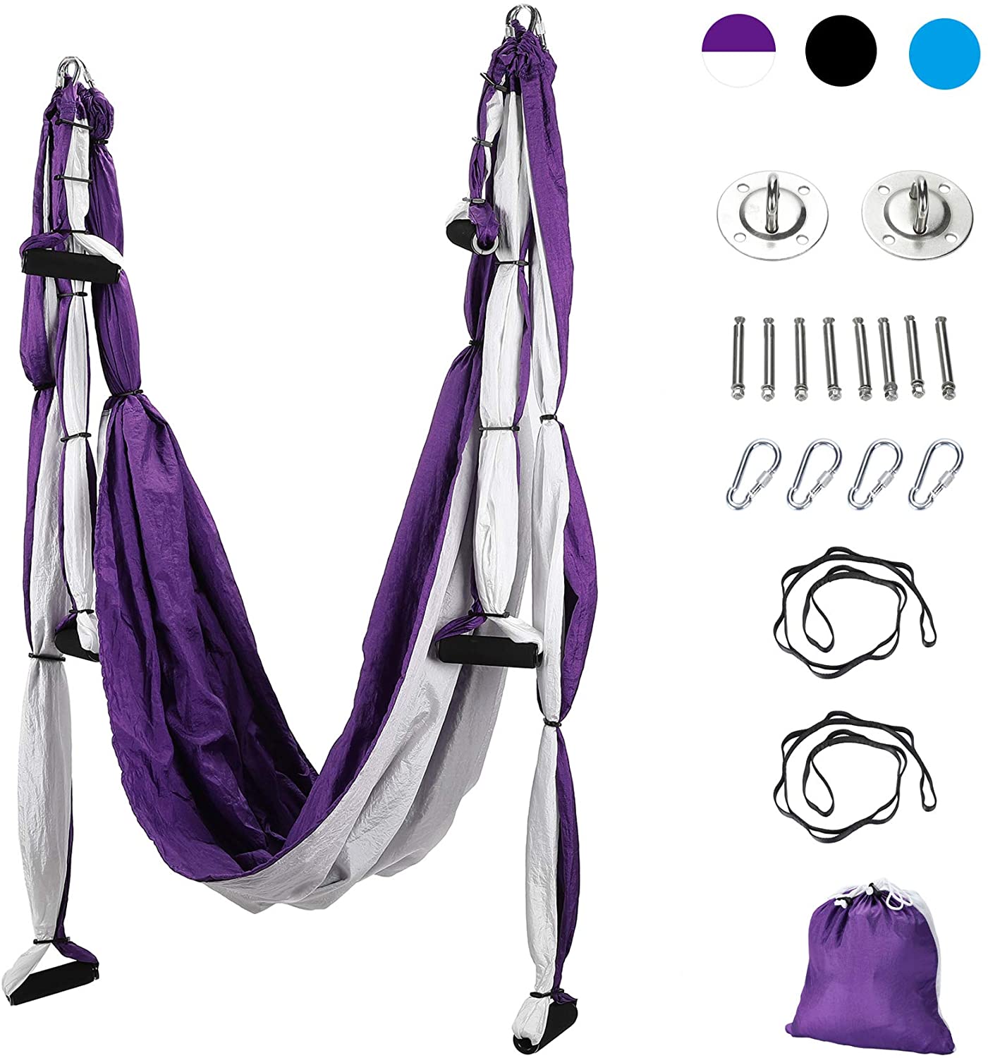 - It requires of high load capacity for aerial yoga practice. Thus, we recommended you to install our product onto solid ceiling wall (Cement )with an electric drill and our ceiling mounts & the matching alloy expansion bolts, or hang it on a tree or a strong beam simply with the two strong straps coming with it.