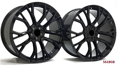 This listing is for ONE SET of aftermarket (4 wheels) brand new Gloss Black model: 5618GB in Size: Front 20X9" and Rear 20x10.5" (Staggered) with a 5x112 bolt pattern. These wheels are brand new in the factory box!