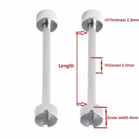 The screws and tubes are constructed from 316L stainless steel, with a tube thickness of 1.5mm, a screwhead thickness of 2.2mm, and a screw width of 4mm to provide a secure fit with compatible straps.