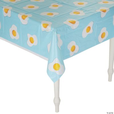 Eggs are a staple of any good brunch, so why not use them to decorate the table? This fun tablecloth has images of cooked eggs and looks great at any brunch. Make clean-up after the brunch a breeze with this disposable tablecloth. Food and drink spills don't have a chance against this attractive tablecloth! Plastic. 54" x 108" Disposable.