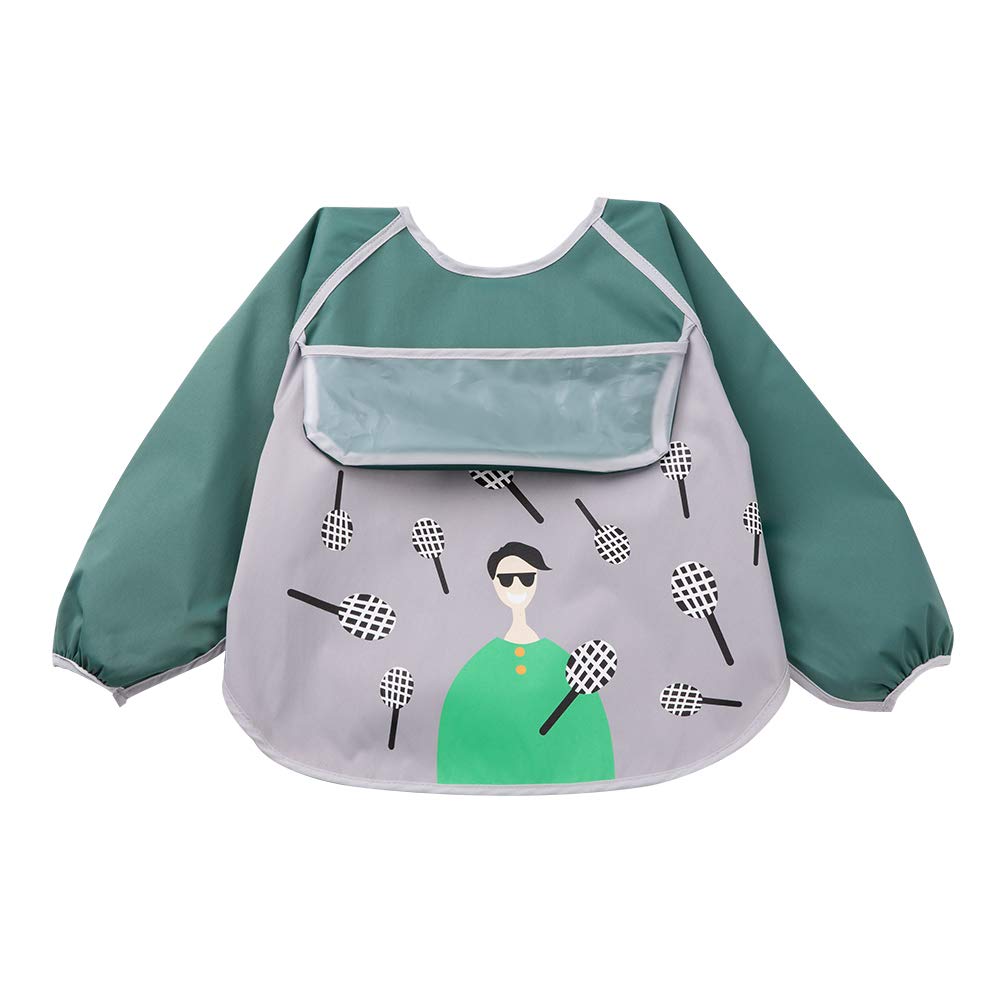 Long Sleeves Bib-Waterproof Smock with Pocket-Washable Sleeved Bib for 6-24 Months Baby (Green)
