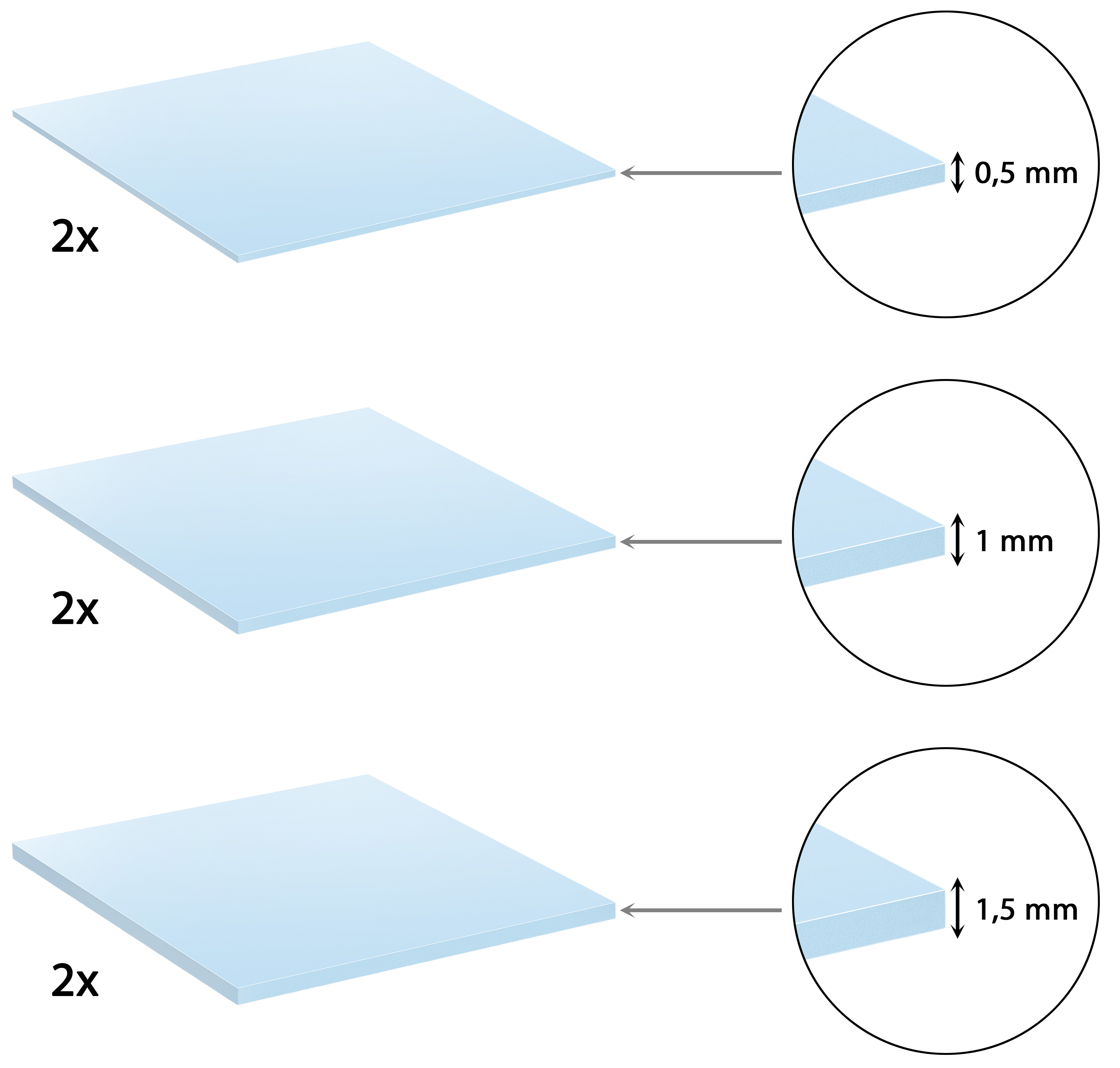 Selon l'emplacement, les pads de refroidissement doivent s'insérer dans un espace mince ou remplir des espaces plus grands. Notre tampon thermique Poppstar se présente sous la forme d'un paquet contenant trois épaisseurs différentes: