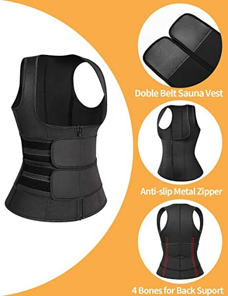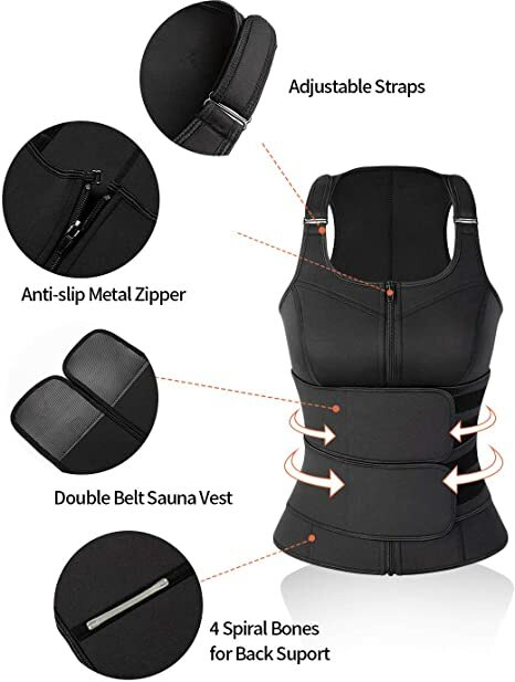 🔥Waist trainer + Sauna vest 2-in-1🔥: Double band waist trainer: This double layer does double duty. Excellent for visual improvement of the tummy & back flabby fat, making you get an hourglass instantly. Adjustable Hook & Loop straps offer your preferred level of compression. Front Zipper design makes it easy on & off.