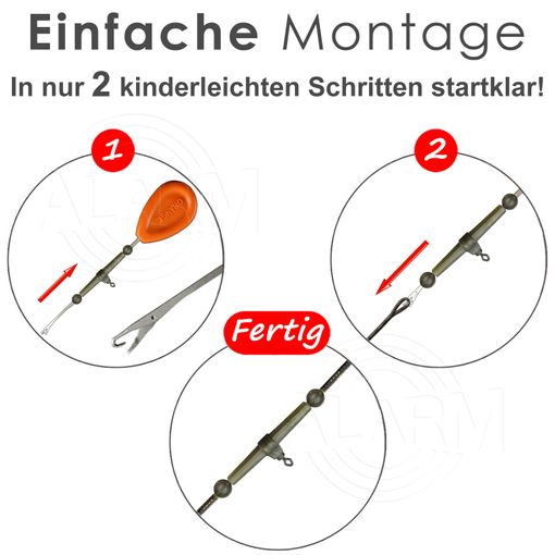 - Sehr einfache Handhabung, schnelles aufziehen der Stopperkugeln auf dem Leadcoreleader dank des stabilen Spenderdrahtes mit Halterung