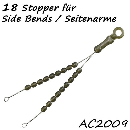 - Gummistopper für Seitenarme (Side bends), vorgesehen für die Höhenverstellung des zweiten Vorfachhakens (carp-rig)