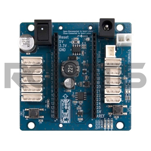 The OpenCM 485 Expansion Board connects to the OpenCM9.04 controller to connect Dynamixels that support RS-485 and TTL. Battery connectors for batteries such as LIPO and Li-ion can be connected, and SMPS connector can be connected as well.